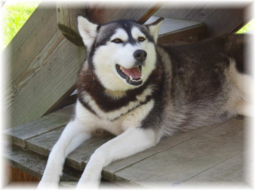Arctica ist unser Spaßvogel , immer zum Spielen , Scherzen und Blödeln bereit . Sie ist ein ganz liebes Husky-