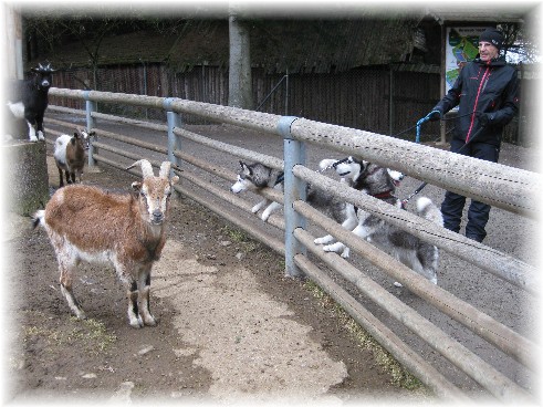Hallo ihr Ziegen , wie geht`s Euch . Dürfen wir zu Euch reinkommen und mit Euch spielen ?