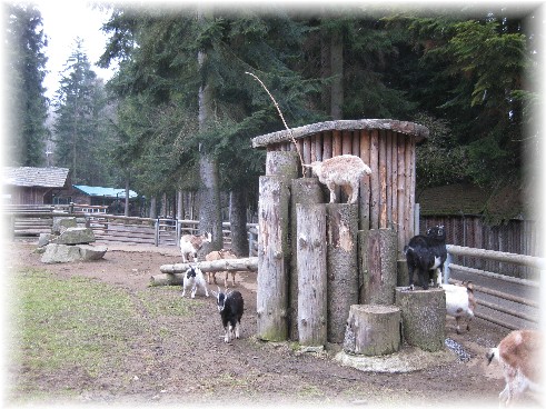 Schaut mal , da sind Ziegen und die haben auch einen tollen Spielplatz . Sogar mit Kletterturm .