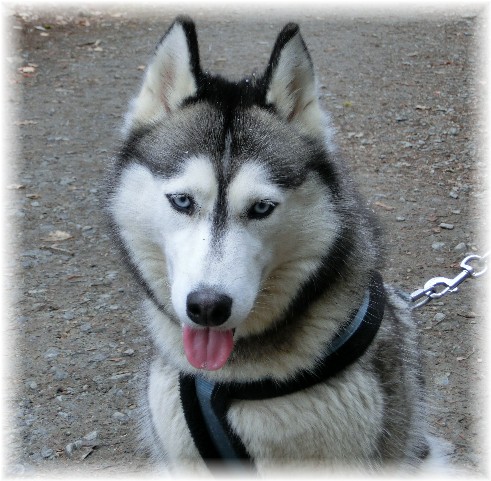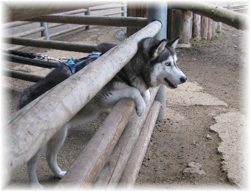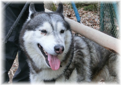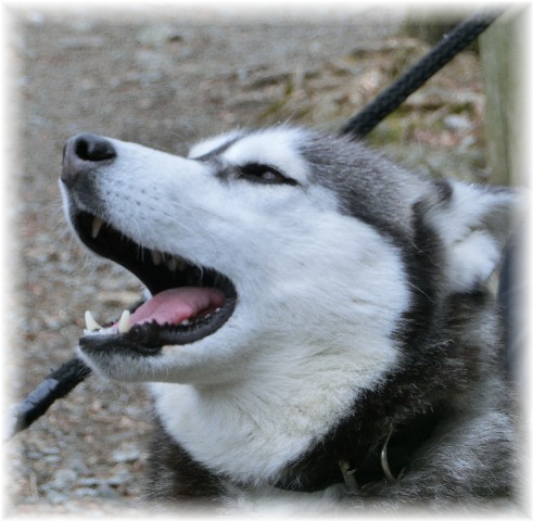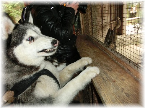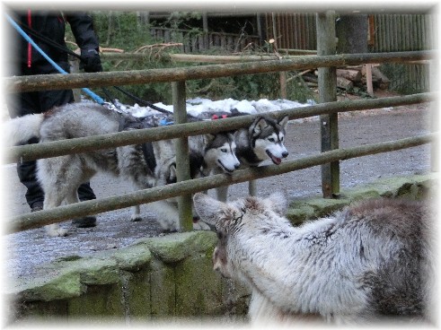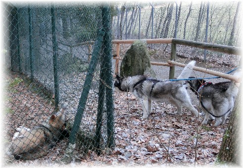 Der ist anscheinend ganz neugierig auf uns . Ist ja eigentlich ein naher Verwandter von uns Huskies .