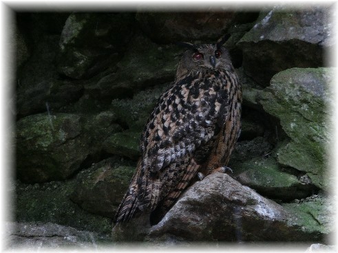 Das ist ein Uhu , so steht es auf dem Schild . So ein großer Vogel .