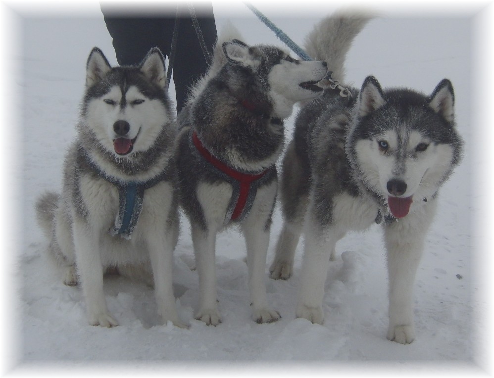 Uns Huskies stört sowas nicht , ist gerade mal eine frische Brise für uns Drei .