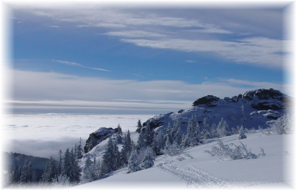 Manchmal ist man auf den hohen Bergen sogar über den Wolken , so wie hier auf diesem Bild .